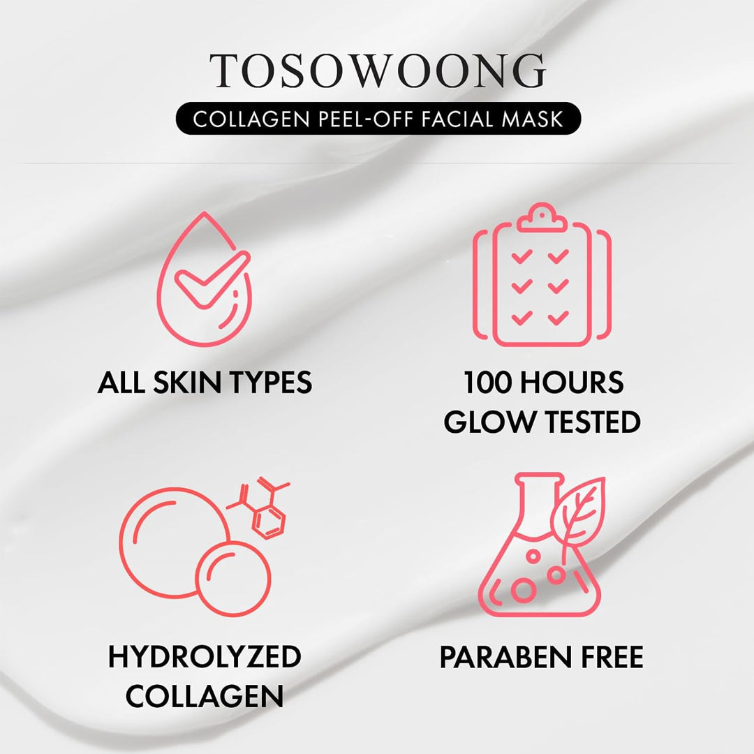 Give your skin a boost of firmness and glow with the Tosowoong Real Collagen Fit Hydrolyzed Collagen For Face by Tosowoong. This peel-off mask is enriched with a high concentration of collagen to deeply moisturize, smooth, and refresh tired-looking skin. It forms a clear film that helps lock in hydration, leaving your face feeling soft, plump, and radiant after every use.